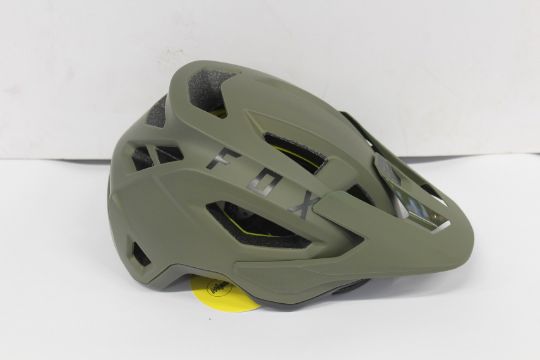 Two boxed as new Fox Racing Speedframe MIPS Helmets in olive green (M).