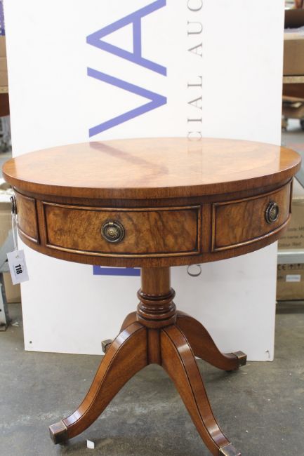 An Iain James Small Circular Drum Table - AMC276 Burr Walnut (Item has some minor damage).