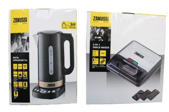 Two new Zanussi black/copper fast boil digital kettles (ZEK - 1290D) and two new Zanussi 3 in 1 snack makers (ZSM - 9786).