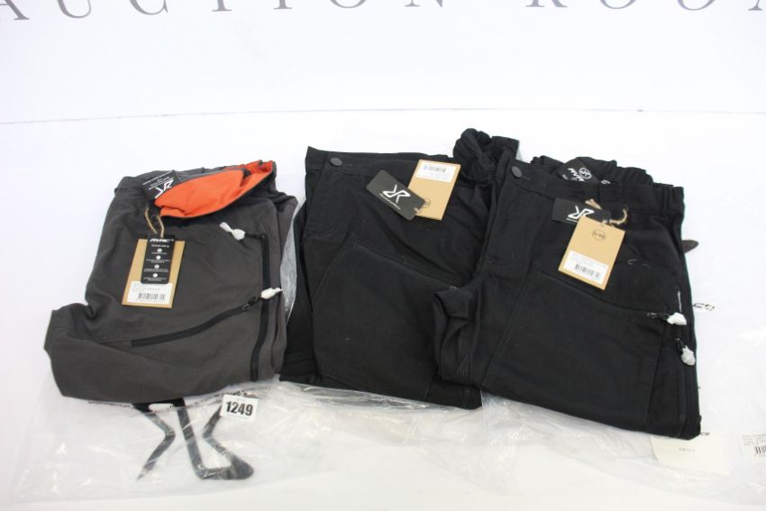 Three pairs of men's as new RVRC trousers; Hyper Pro (S) and two pairs of Norwand Pro (XS,S).