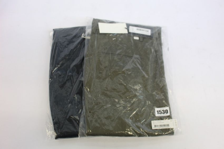 Two pairs of as new Wood Wood Marcus light twill trousers (1 x olive , 1 x navy both size 32 - RRP £125 each).