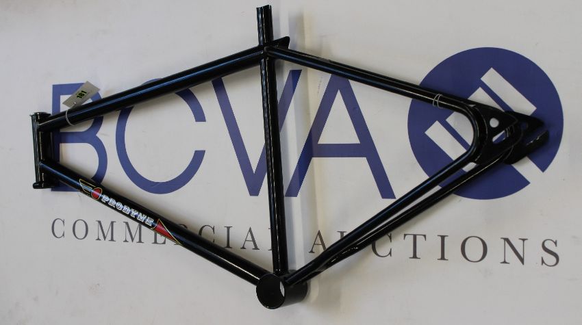 A Prodyne 26" 1981 Cruiser frame in Black, good condition with some scratches to the bottom of the steering tube, right-side fork end slightly bent.