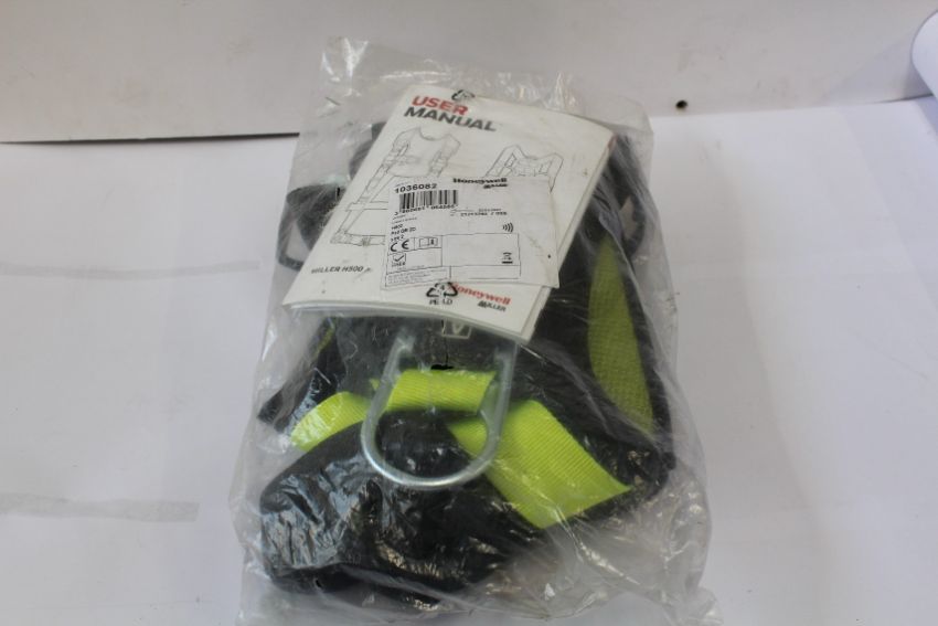 A Honeywell Miller H-Design Duraflex 2 Point Harness with Auto Buckles - Size 3, an H500 Harness and one similar (May be incomplete).