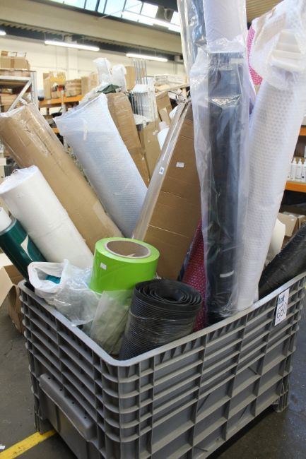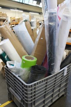 A stillage of miscellaneous rolls to include assorted plastics, Perspex and a mat.