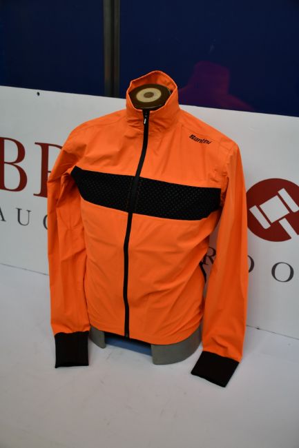 A men's as new Santini Guard Mercurio cycling rain jacket in orange (XXL - RRP £245).