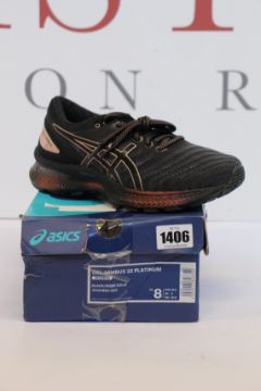 A pair of women's as new Asics Gel Nimbus 22 Platinum trainers (UK 6).