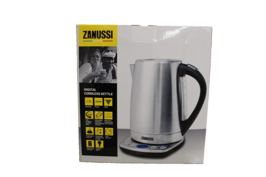 Three new silver 1.7L 2200W Zanussi cordless digital kettles (ZEK - 1295D).
