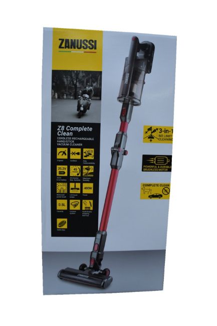 A new Zanussi Red Z8 Complete Clean cordless rechargeable 400W, 0.05L foldable vacuum cleaner (ZANXZ251).