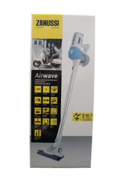 A new Zanussi Airwave Blue cordless rechargeable 130W, 1Ltr 3 in 1 hand stick vacuum cleaner (ZHS-32802).