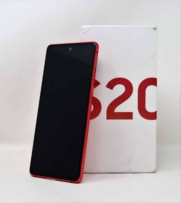 A boxed as new Samsung Galaxy S20 FE 5G SM-G781B 256GB in Cloud Red (Box opened, UK plug and charging cable included) (IMEI: 350145450469043 S/N: 8806090841125).