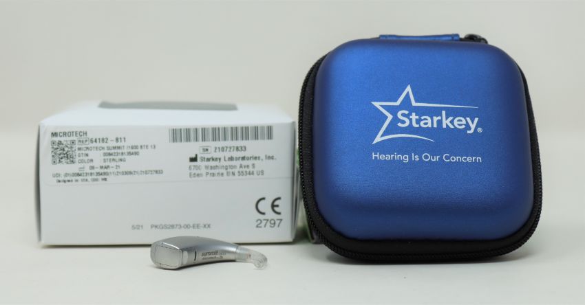 A boxed as new Starkey Summit BTE Power Plus 13 Hearing Aid in Sterling (REF: 64519-811).