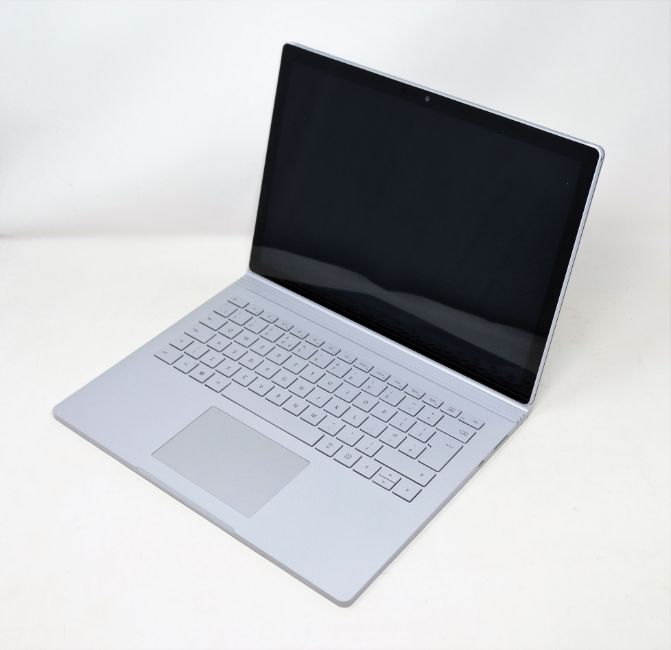 A pre-owned 13.5" Microsoft Surface Book 2 with Intel Core i7-8650U 1.90GHz CPU, 16GB RAM, 1TB SSD and NVIDEA GeForce GTX 1050 2GB GPU in silver.