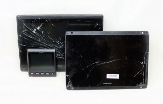 SOLD FOR PARTS: A pre-owned Garmin GPSMAP 8412xsv 12” Chartplotter, a pre-owned Garmin GPSMAP 1223xsv 12” Chartplotter (Both with damaged screen glass) and a pre-owned Garmin GHC 20 Marine Autopilot Control Display (All items untested, sold as seen for parts only).