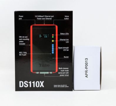 A boxed as new Tibbo DS110X Programmable Serial Controller (P/N: DS1100-00) and a boxed as new UK power supply (P/N: APR-P0013).