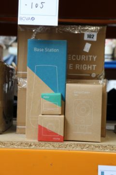 A large quantity of SimpliSafe Home Security products to include; 1x Base Station (Cloud), 1x Wireless Keypad (Cloud), 3x Entry Sensors, 4x Motion Sensors, 5x CMOB1 Outdoor Security Cameras, 5x Glassbreak Sensors, 4x Panic buttons, 9x Smoke Detectors, 2x Freeze Sensors, 5x Water Sensors, 2x Key Fob, 3x Auxiliary Sirens, 2x Window Decals and 4x SimpliCam 1080p.