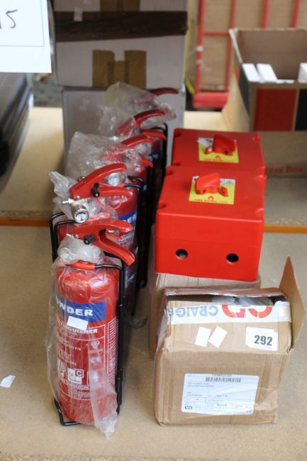 Five Craig & Derricott F400 Fire Rated Isolators (4 x 32A, 1 x 20A) and five JacTone Powder Fire Extinguishers.