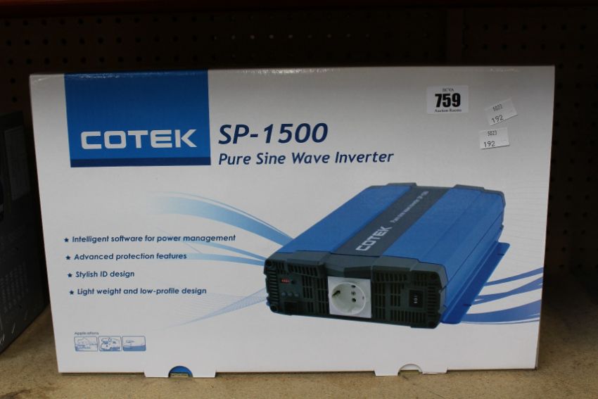 A boxed as new Cotek SP-1500-212 pure sine wave inverter.