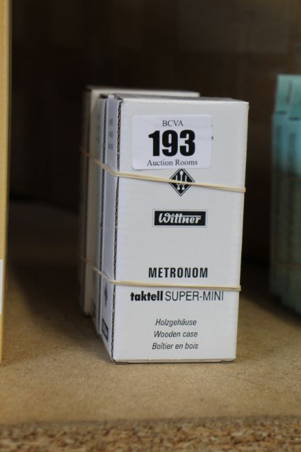 Three boxed as new Wittner Taktell Super-Mini Metronomes (880260 x 2, 880250 x 1).