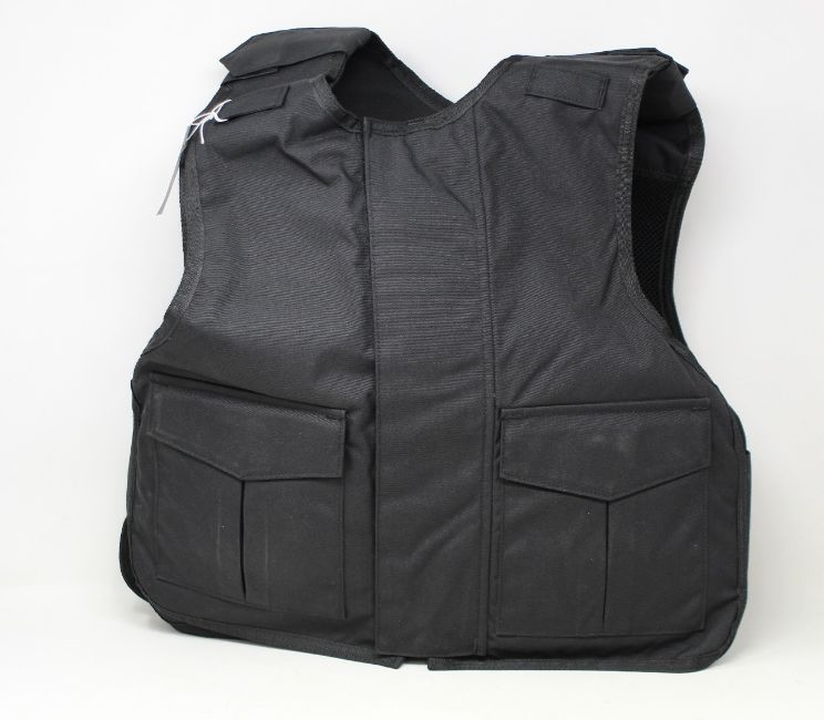 A Safe Guard Armour Patrol 1 tactical armour vest in Black, with a detachable 'Public Safety' velcro patch (Size: M).
