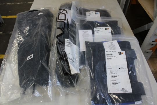 Two as new DonJoy Fast Fit Trom in size M and three Procare Reddie Braces, sizes 1x XL, 2x XXL.