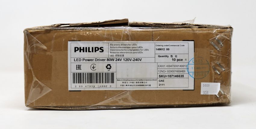 A box of ten as new Philips LED Power Drivers 80w 24v 120v-240v (Box opened).