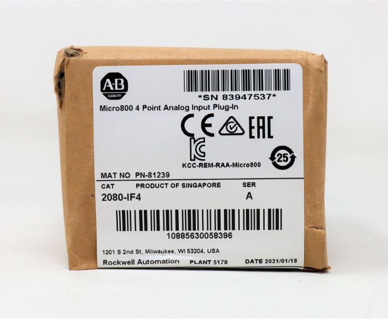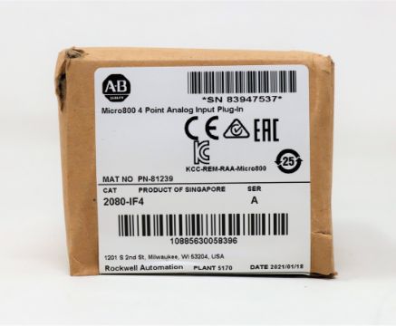 A boxed as new Allen-Bradley Micro800 4 Point Analog Input Plug-In (CAT: 2080-IF4 A) (Box sealed).