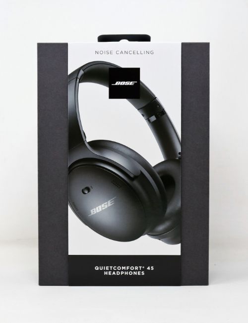 A boxed as new pair of Bose QuietComfort 45 Wireless Bluetooth Noise-Cancelling Headphones in Black (Box opened, damage to packaging).