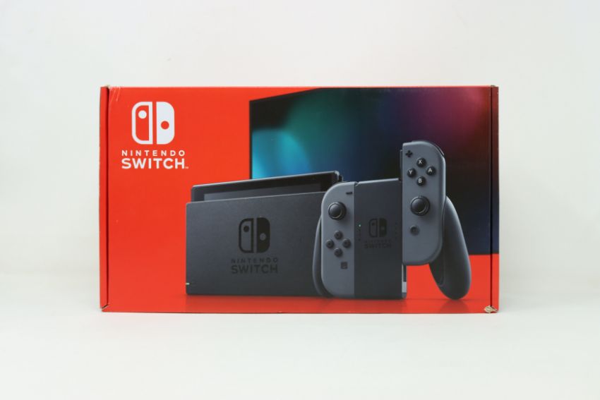 A boxed as new Nintendo Switch Console in Grey (M/N: HAD-S-KAAAA-JPN) (Some packaging text in Japanese. 2-pin plug charger included).