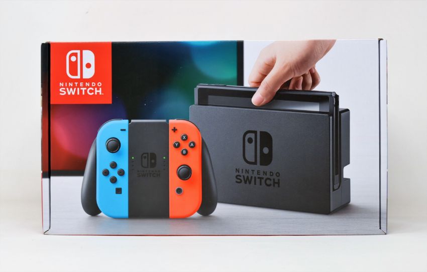 A boxed as new Nintendo Switch Console in Neon Red/Blue (M/N: HAD-S-KABAA-JPN) (Some packaging text in Japanese. 2-pin plug charger included).
