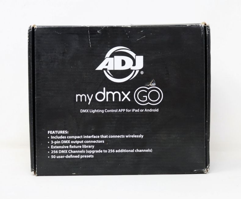 A boxed as new ADJ MyDMX GO DMX Lighting Controller (Box sealed, some damage to box).