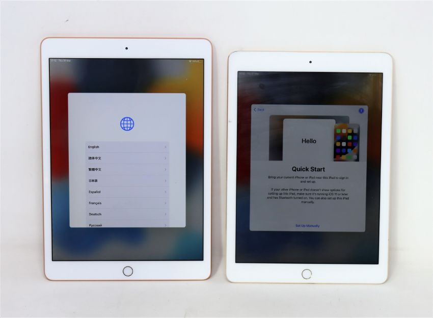 SOLD FOR PARTS- ACTIVATION LOCKED: A pre-owned Apple Apple iPad 10.2" 8th Gen (Wi-Fi Only) 128GB in Gold (iCloud account locked. Small inscription to back casing) (Serial: F6MF62RTQ1GJ) and a owned Apple iPad Air 2 (Wi-Fi Only, A1566) 64GB in Space Grey (iCloud account locked, some cosmetic damage to casing) (Serial: DMRNMHKPG5VV).