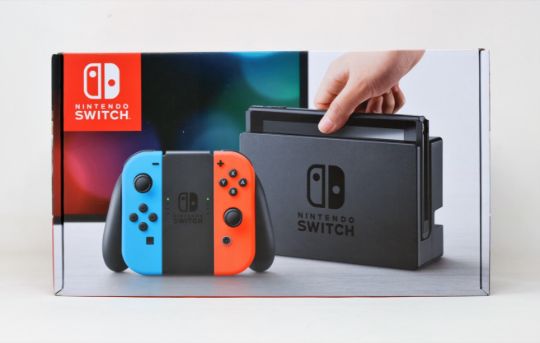 A boxed as new Nintendo Switch Console in Neon Red/Blue (M/N: HAD-S-KABAA-HKG) (Some packaging text in Chinese. UK plug charger included).