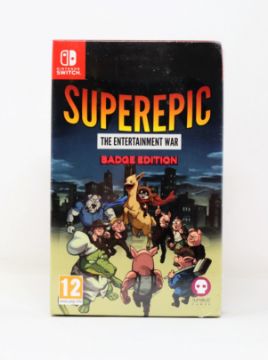 Two boxed as new 'Superepic: The Entertainment War' Badge Edition Game Cards for Nintendo Switch (Packaging sealed).