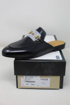 A pair of as new Gucci leather horsebit slippers (EU 38 - RRP £580).