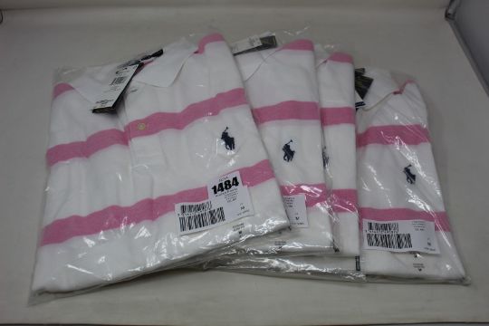 Four as new Ralph Lauren Summer pink/white polo shirts (All M - RRP £65 each).