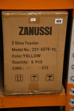 Six new Zanussi yellow 2 slice Toasters (ZST - 6579).