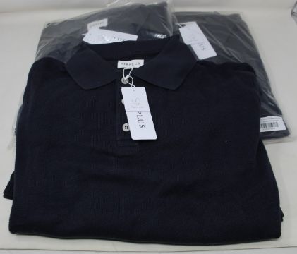 Three as new Sirplus navy organic cotton long sleeve polo shirts (All M - RRP £95 each).