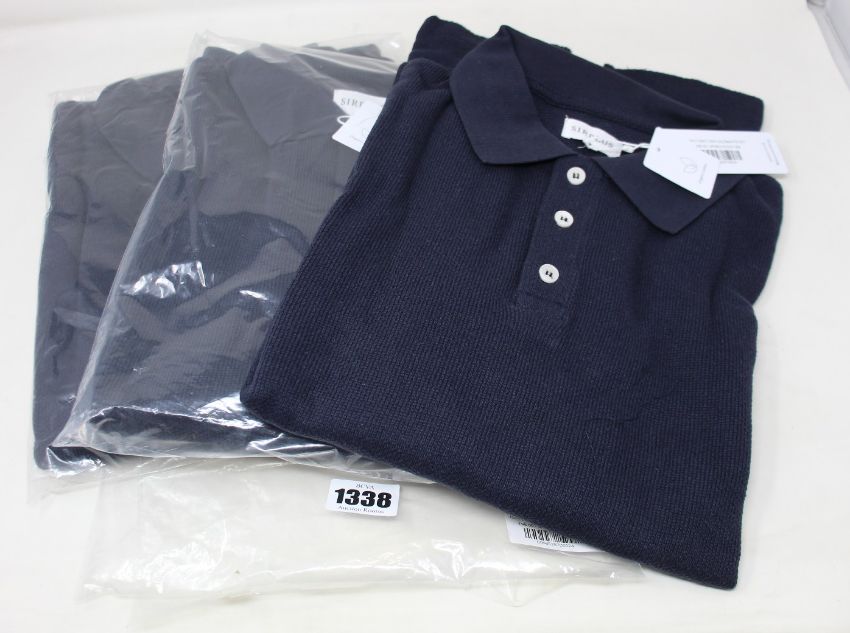 Three as new Sirplus navy organic cotton long sleeve polo shirts (All M - RRP £95 each).