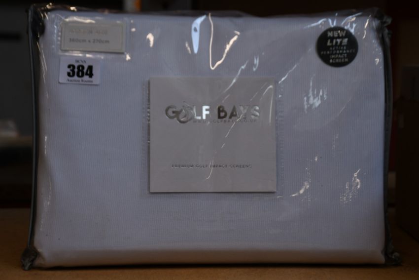 An as new Golf Bays Lite 360cm x 270cm impact screen.