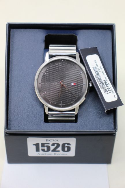 A man's boxed as new Tommy Hilfiger James Analogue Quartz Watch with stainless steel bracelet (1791654).