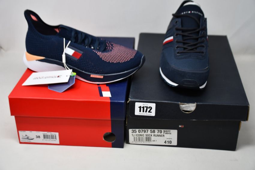 Two pairs of as new Tommy Hilfiger trainers; women's TS Elite 2 (EU 38) and TJ Iconic Sock Runner (UK 7).