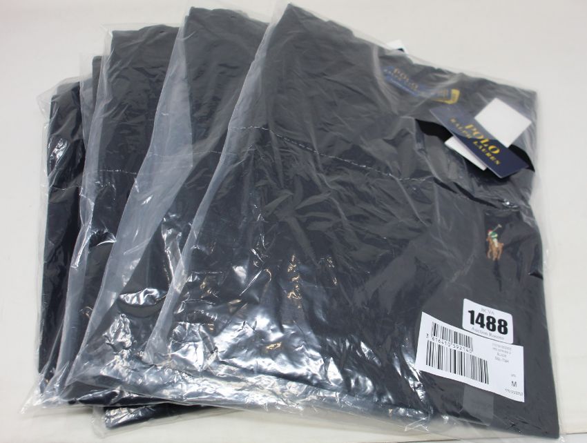 Five as new Ralph Lauren black T-shirts (2 x M, 2 x L, 1 x XL - RRP £40 each).
