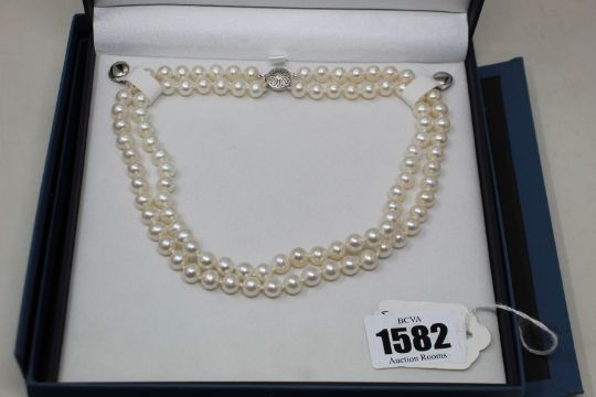 A double string fresh water cultured pearl necklace with silver clasp 925 clasp 45cml.