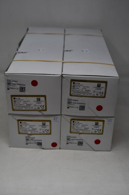 Four cases of twenty boxed as new Maxima by Henry Schein dental K-File (REF: [507-1248], [570-1245], [570-1246], [570-1244], each box has 5 packs of 6 individually sealed files).