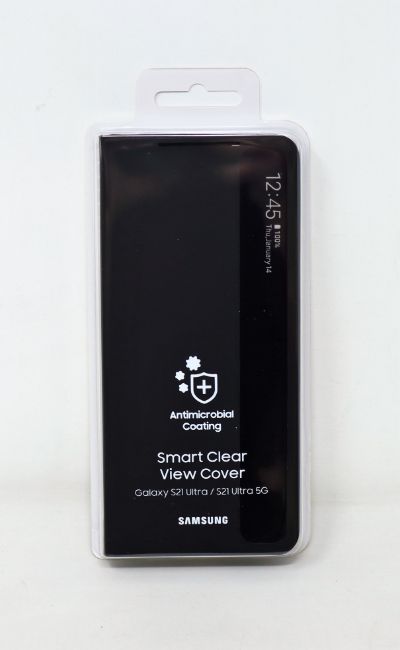 Ten boxed as new Samsung Galaxy S21 Ultra Smart Clear View Cover Cases in Black (M/N: EF-ZG998) (Packaging individually sealed).
