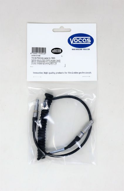 Two as new Vocas Remote Cables for RED DSMC2 Cameras (Length: 250 mm, stretched 600 mm) (P/N: 0390-0158).
