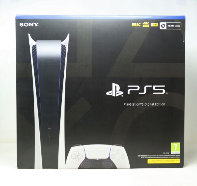 A boxed as new Sony PlayStation 5 digital edition games console in white (825GB) (model: CFI-1116B).