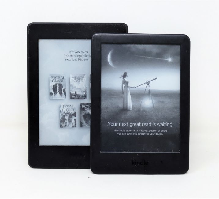 A pre-owned Kindle Paperwhite (7th Gen) in Black (Some damage to screen) and a pre-owned Kindle Paperwhite (7th Gen) in Black (Damaged casing).