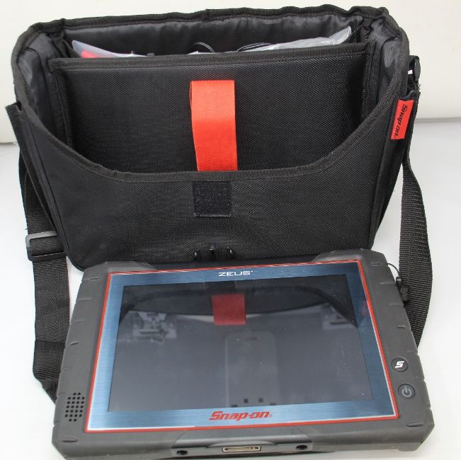 A pre-owned Snap-on Zeus Diagnostics System 20.2 with Scope Module M4 Compact Scan Module M5, carry bag and accessories (Item powers on but is untested) (Bundle Name: 20.2.1, Build Number: 2.19.1.1111, Model: EEMS342A).