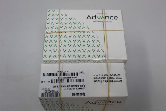 Three boxed as new Specsavers Hearing aids to include Two Advance IF CIC 117 (REF: 10953248) and An Advance IF CIC 117 (REF: 10953251).